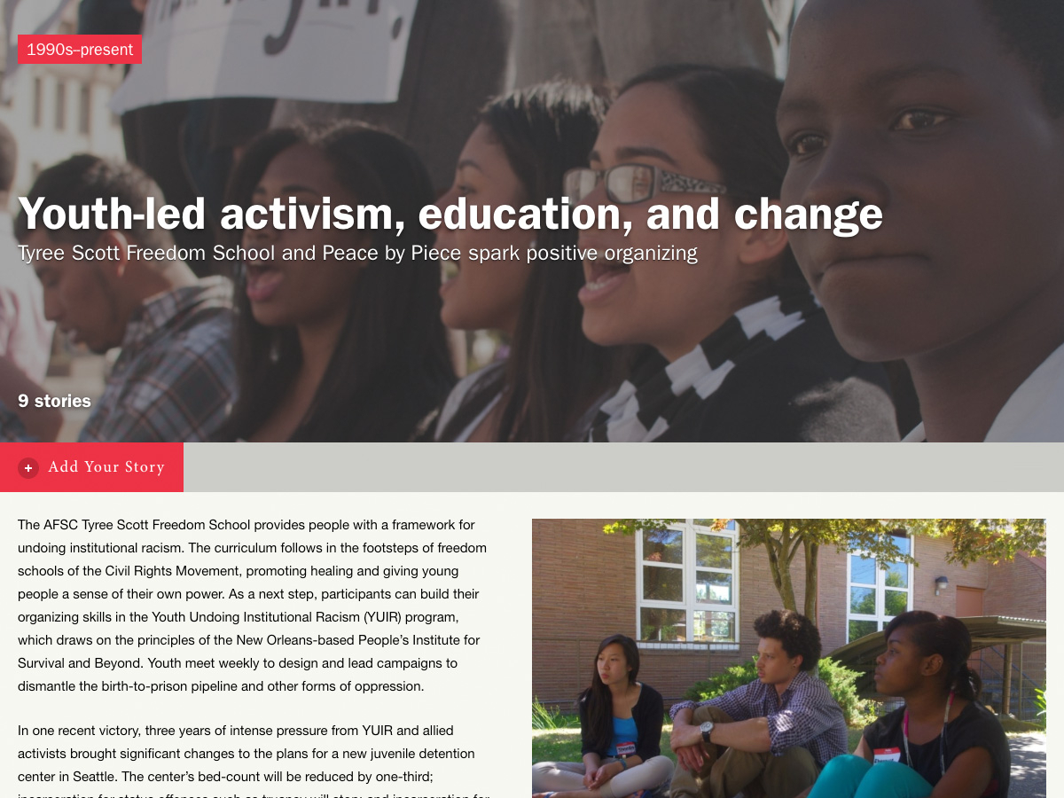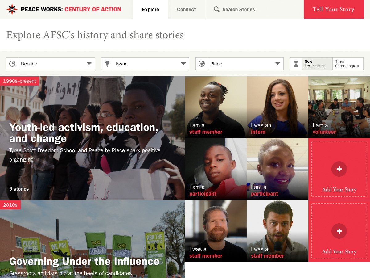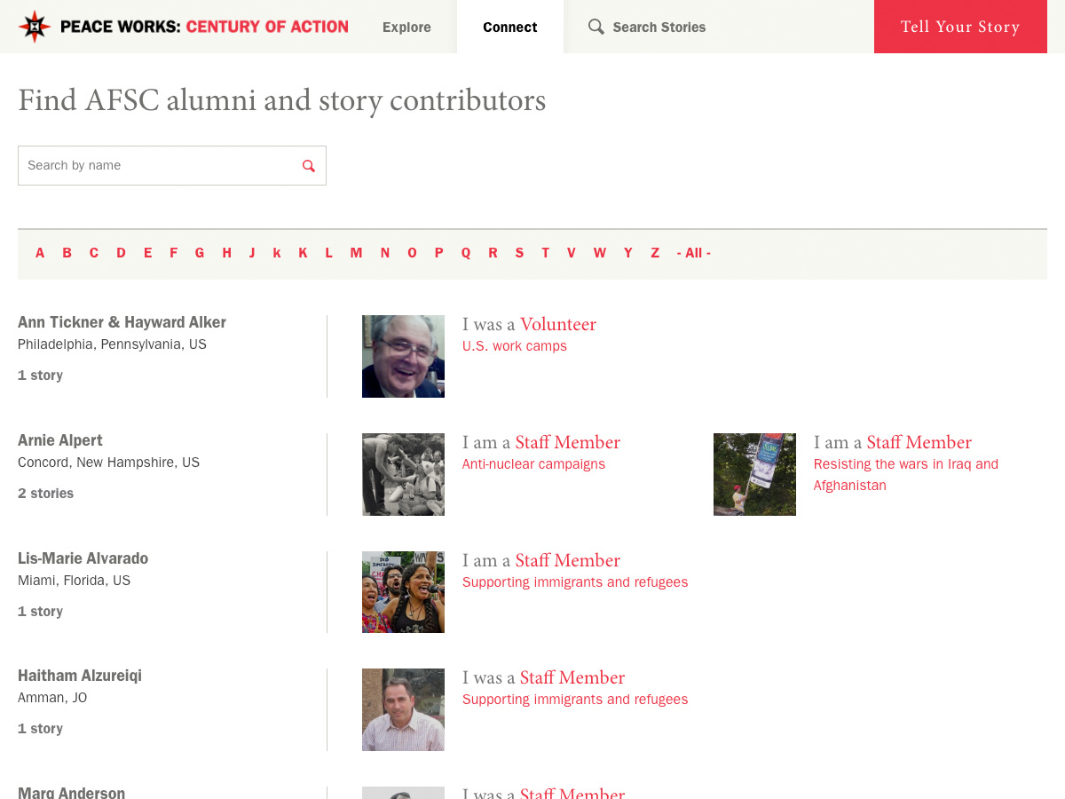 Peace Works: Century of Action was created as part of the centennial celebration of the American Friends Service Committee (AFSC), a Quaker organization founded in 1917. It is space for people whose lives have been touched by AFSC to share their stories.